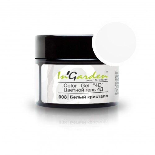 4-D гель Ingarden для ногтей (белый кристалл) 5 грВажное преимущество гелевой лепки перед акриловой состоит в том, что гель не имеет запаха, поэтому многие мастера выбирают объемную лепку гелем. 4D-гель In’Garden удобно использовать в работе – он пластичен, не растекается по поверхности ногтя, с его помощью мастер получает возможность создавать дизайны, которые придутся по вкусу самым требовательным клиентам!