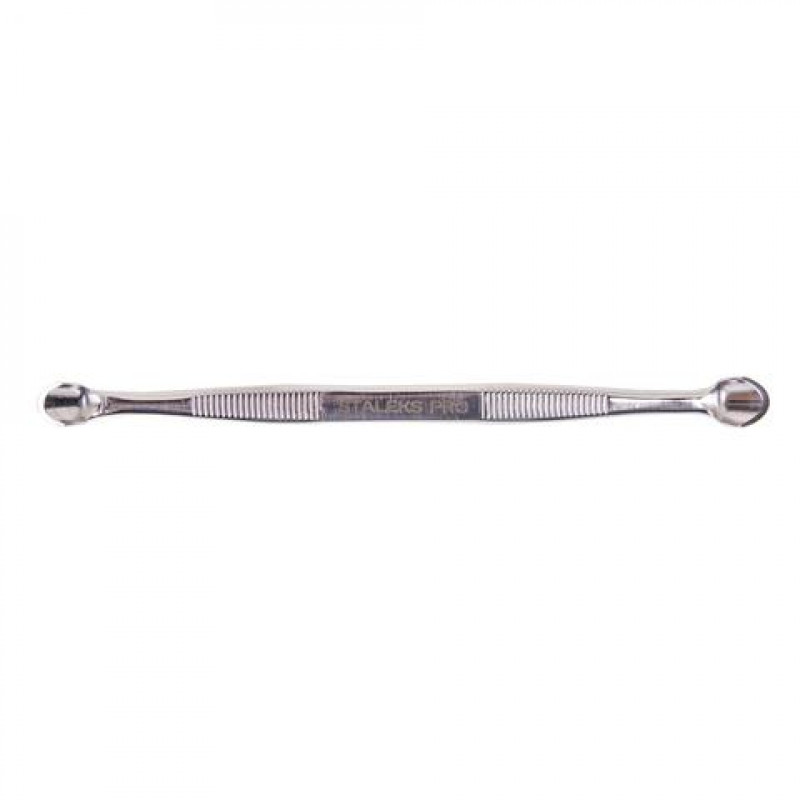 • изогнутая форма позволяет отодвинуть сильно приросшую кутикулу, не травмируя ногтевую пластину;