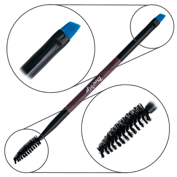 Двусторонняя скошенная кисть с щеточкой для нанесения составов и краски во время процедуры стайлинга бровей