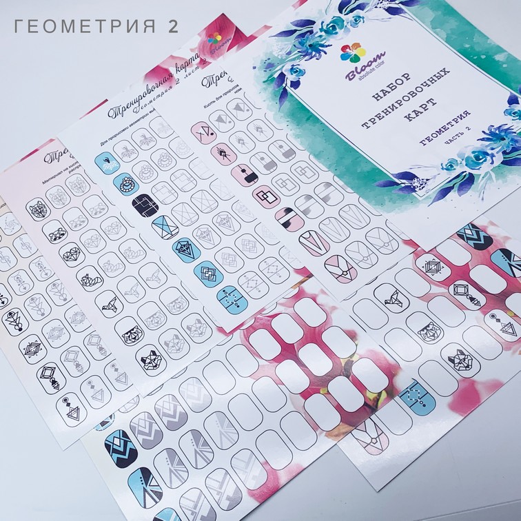 Уникальная разработка компании Bloom! Тренеровочные карты разработаны с учетом последних тенденций в дизайне маникюра. Набор карт поможет научиться выполнять различные дизайны гель-красками и другими материалами, поможет закрепить навыки нэйл-дизайна и вдохновит вас на создание шедевров на ногтях ваших клиентов!