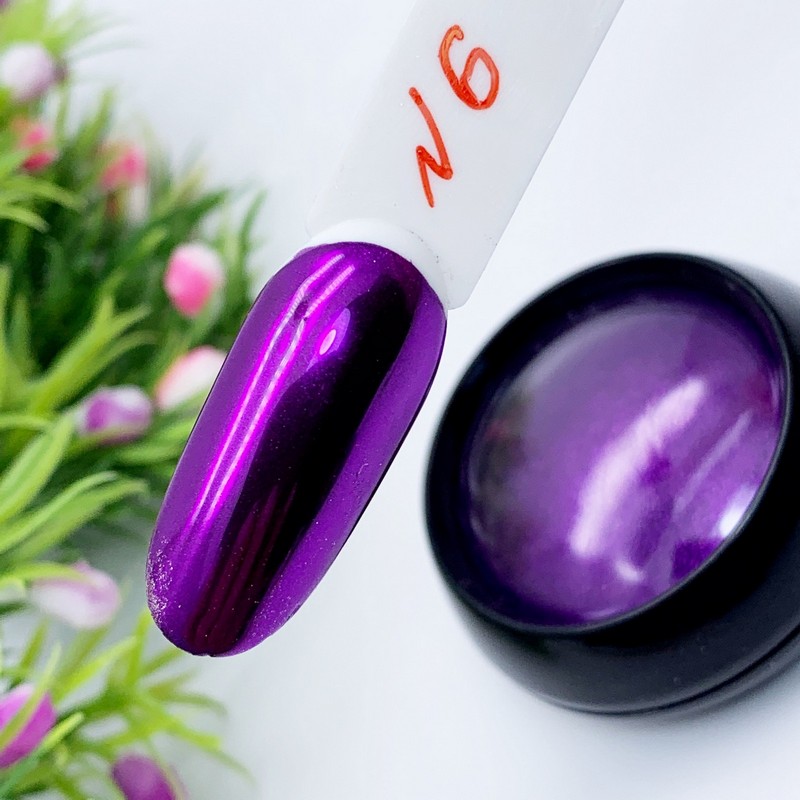Металлическая втирка супер мелкого помола. Идеально зеркальный блеск после нанесения. На просушенный топ без липкого слоя втереть пальцем или спонжем.
