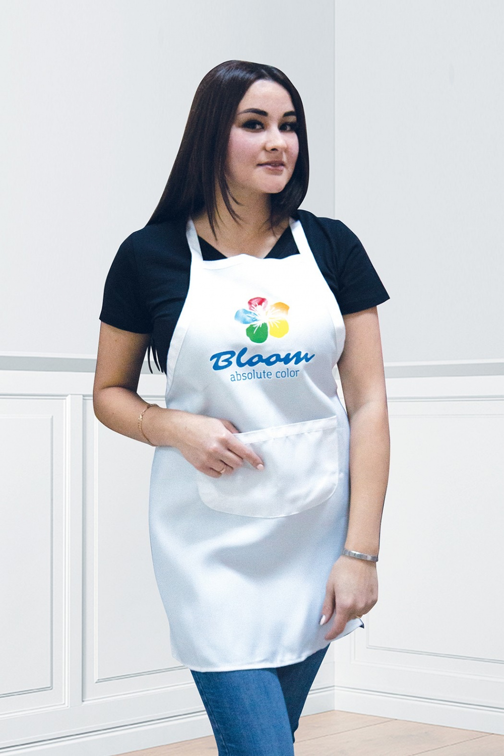 Фартук Bloom мастера цветной с логотипом Белый